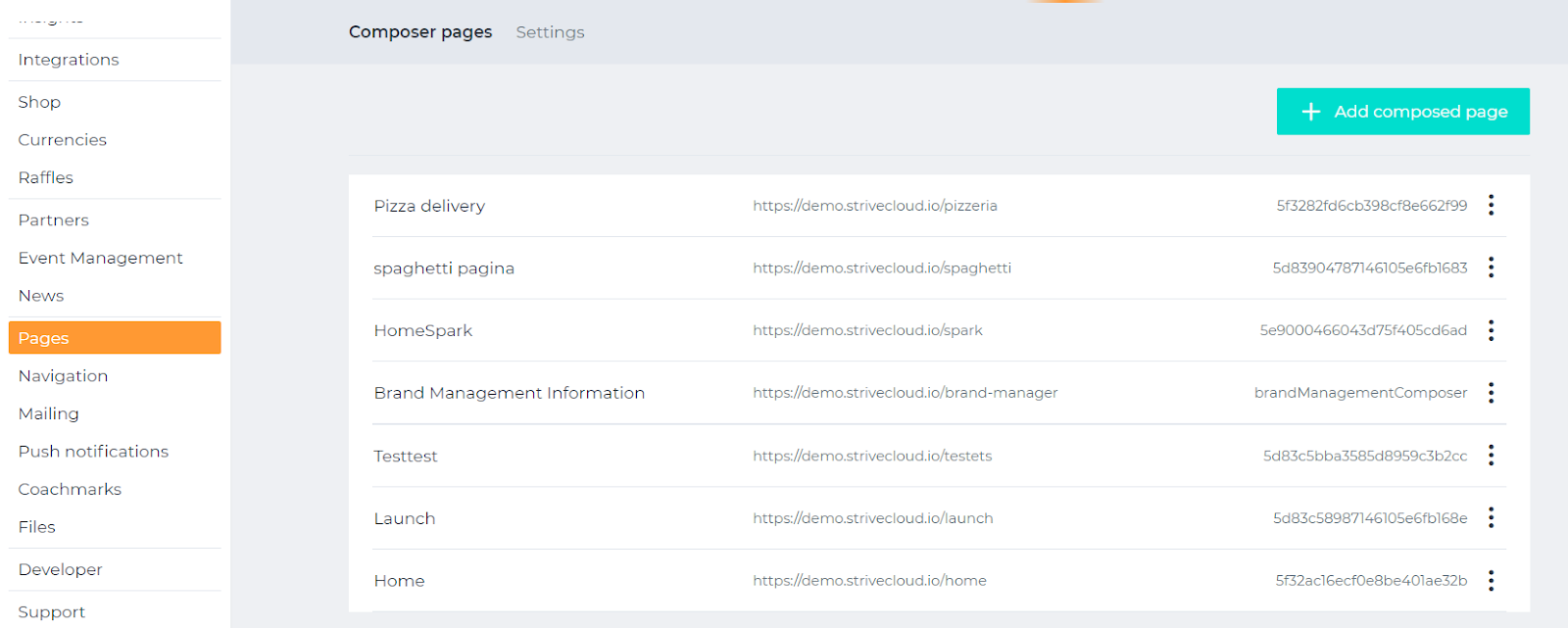 Besides default pages, you are able to add your own custom pages. You can edit, design and shape these pages any way you want, these are called composer pages.