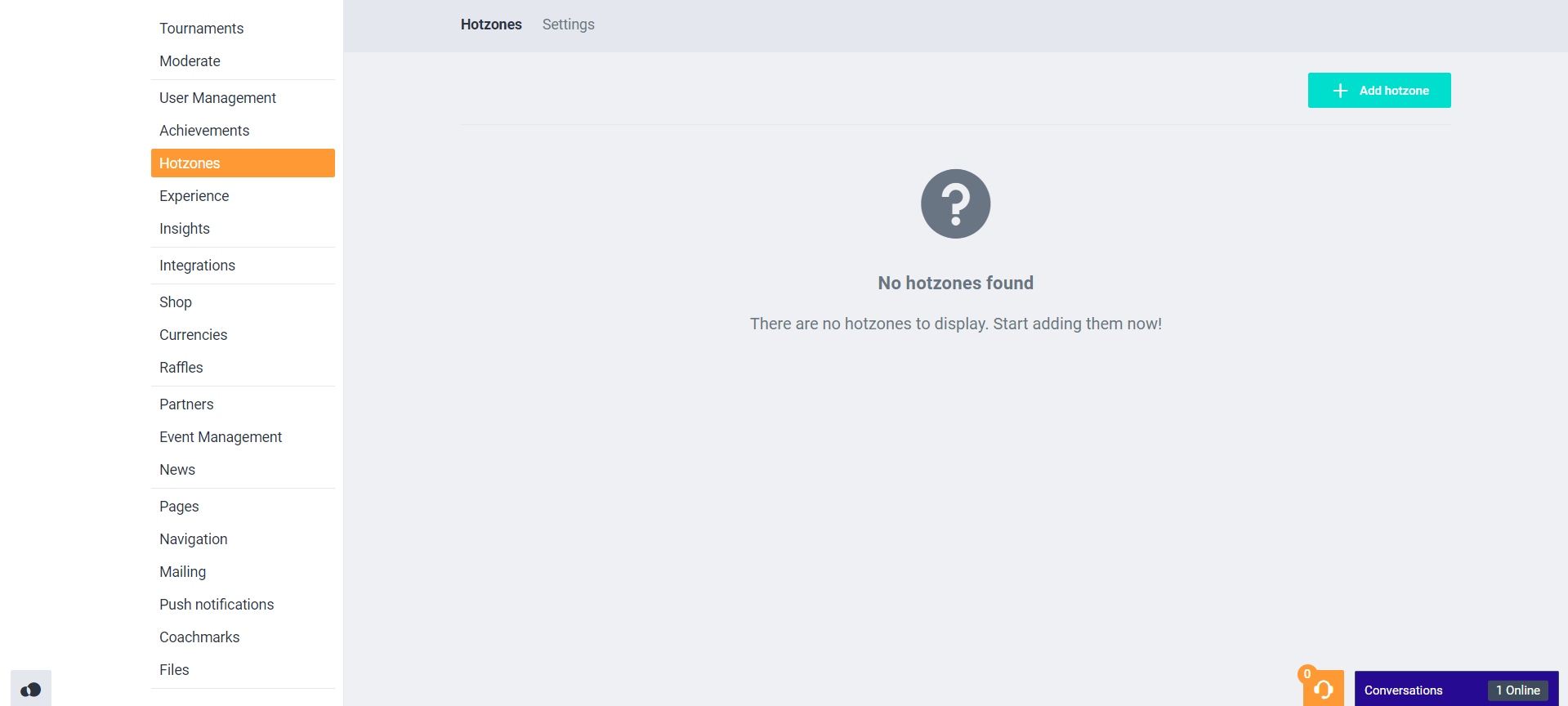 To create a new hotzone, click the ‘+Add hotzone’ button: