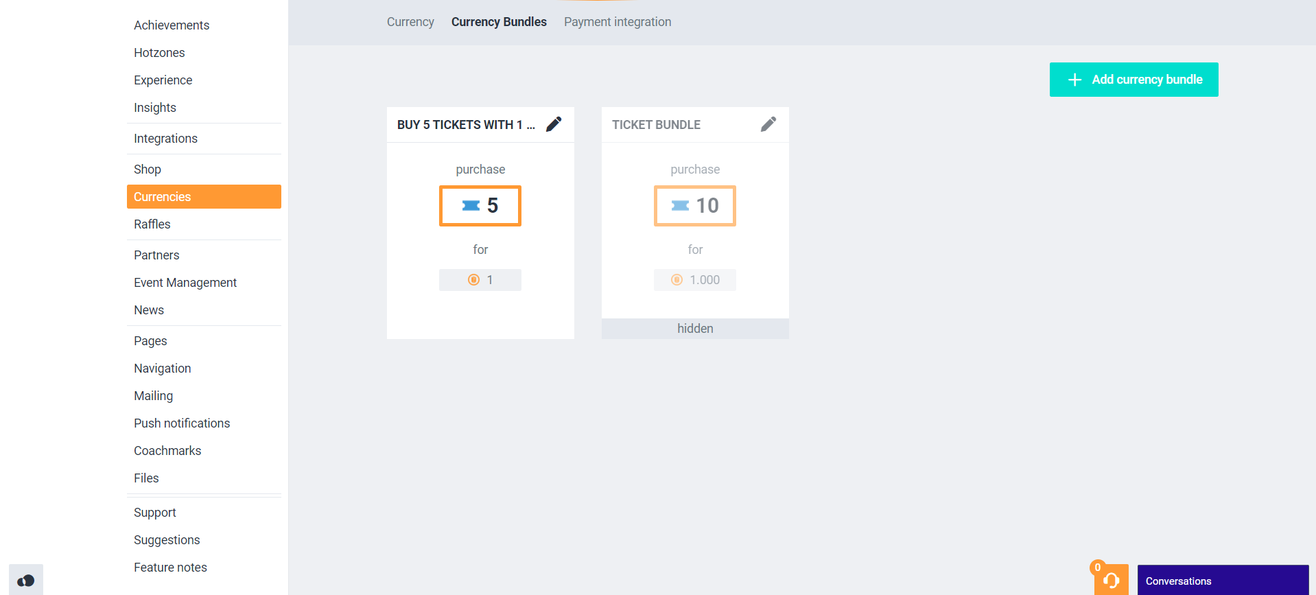 Click the ‘+ Add currency bundle’ to add a new currency bundle: