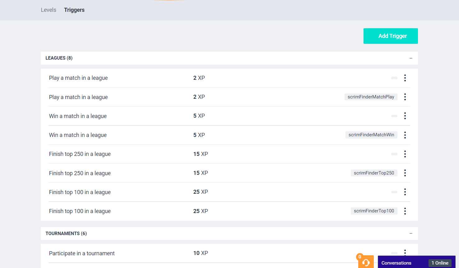 Certain actions or events that you complete will award you with experience points, these are called triggers. Triggers are determined by a certain stat, for example: winning a tournament, logging in a certain amount of times, completing your profile, etc…