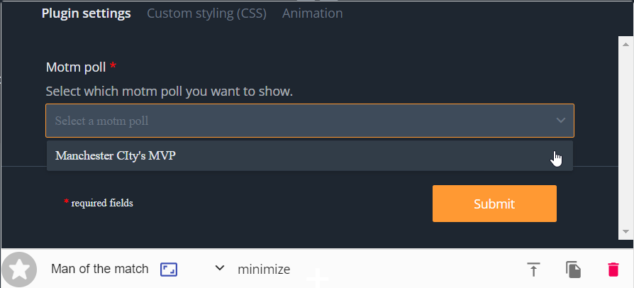 After you’ve have created the players for the man of the match, you can set up the actual Man of the Match poll.