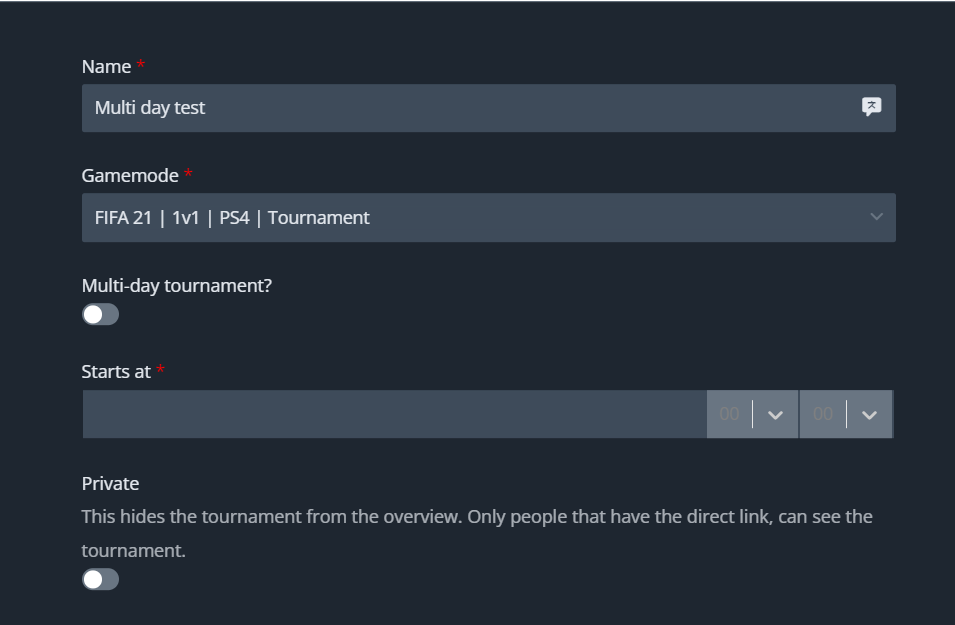 tup, each round of the tournament will be played the following day, week, or even month. This multi-day feature can be applied to any kind of game mode. Here’s how you set this up: