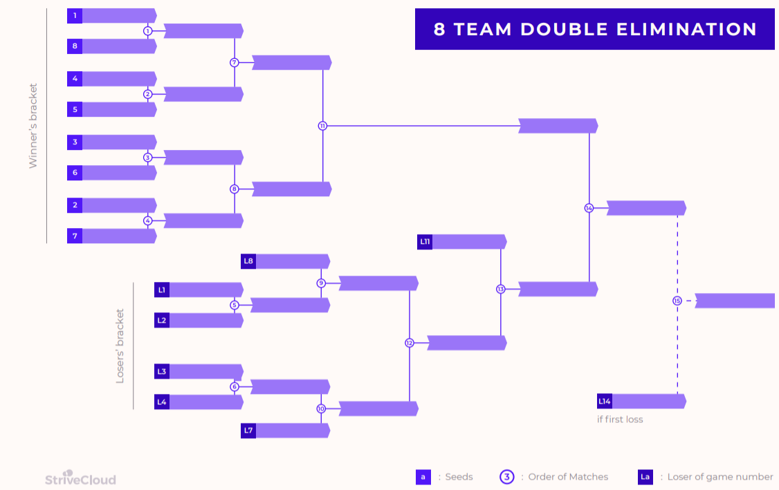 The example below illustrates the way the upper and lower bracket behave in a tournament consisting of 8 participants: