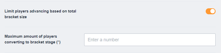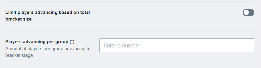 When this feature is toggled off, you can determine the amount of participants that advance from the group stage to the bracket stage. The size of the bracket will be determined by the amount of participants and groups.