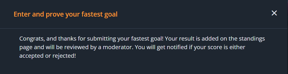 The following notification will appear. A moderator will now determine whether or not the proof uploaded is considered valid. This can be done by clicking the ‘Results’ tab:
