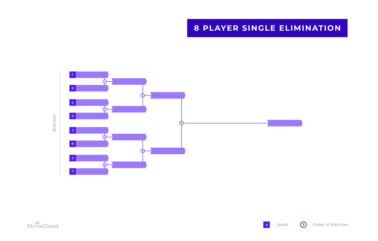 The example below illustrates the general structure of a single elimination tournament with 8 participants: