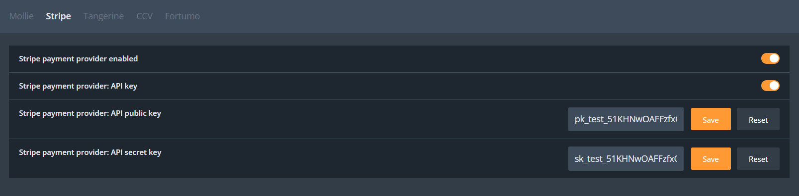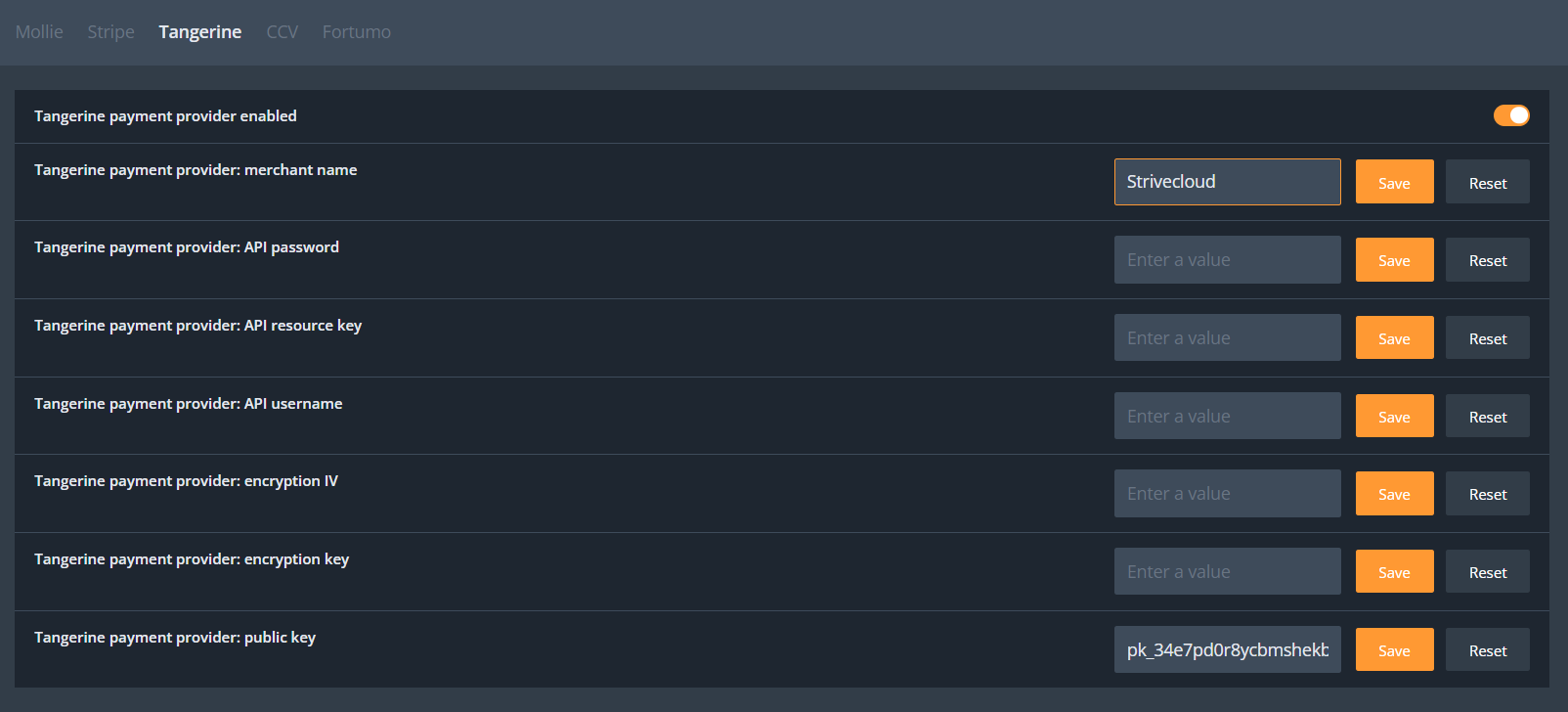 Strivecloud supports a multitude of these payment providers. As of now, there are payment integrations possible with Mollie, Stripe, Tangerine, CCV, and Fortuno.