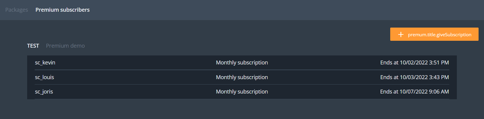Here you can see an overview of the different premium packages and which members are subscripted to which package.