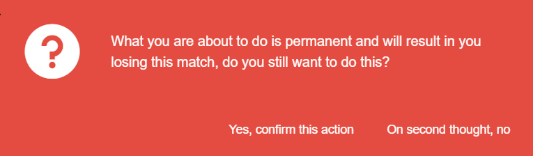 Click the icon to forfeit a match. Different from the tournament matches, this will result in the following screen: