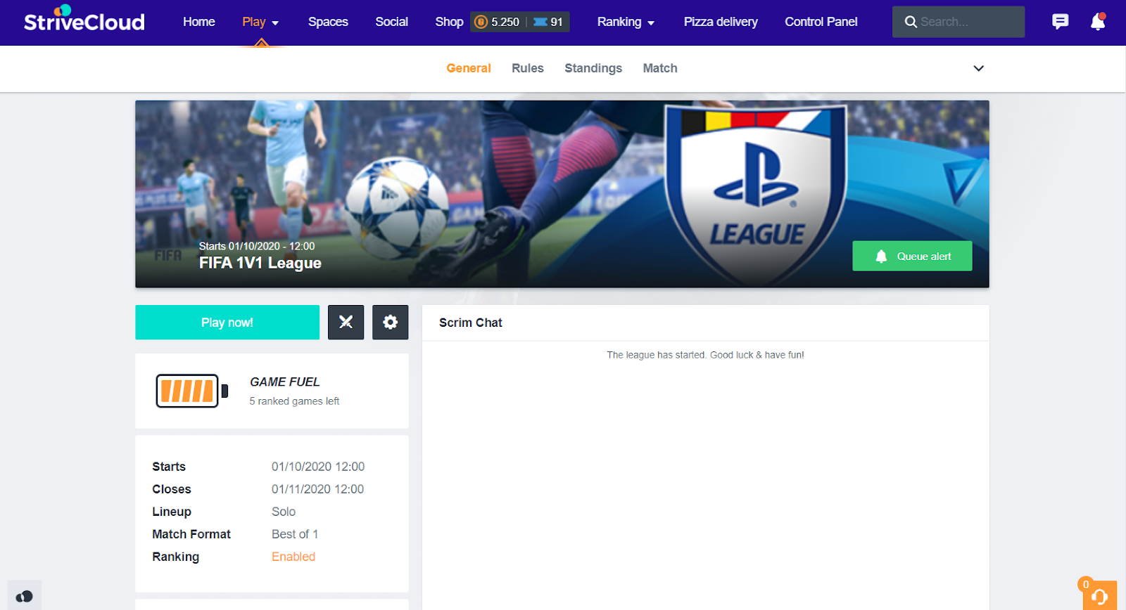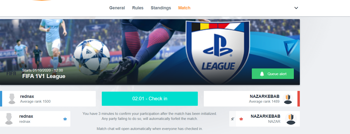 Queue alert: Click the ‘Queue alert’ button, this alerts you with a notification whenever other players are interested in playing a match in this particular league. However, this won’t start the matchmaking process.