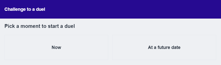Type in the name of an opponent of your choice, allowing you to pick a moment to start a duel: