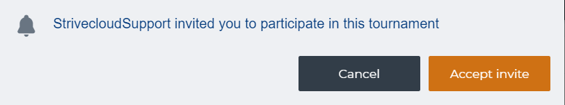 Whenever a user-generated tournament has been set up, the tournament admin will need to send out invites. Users will need to accept their user-generated tournament invite.