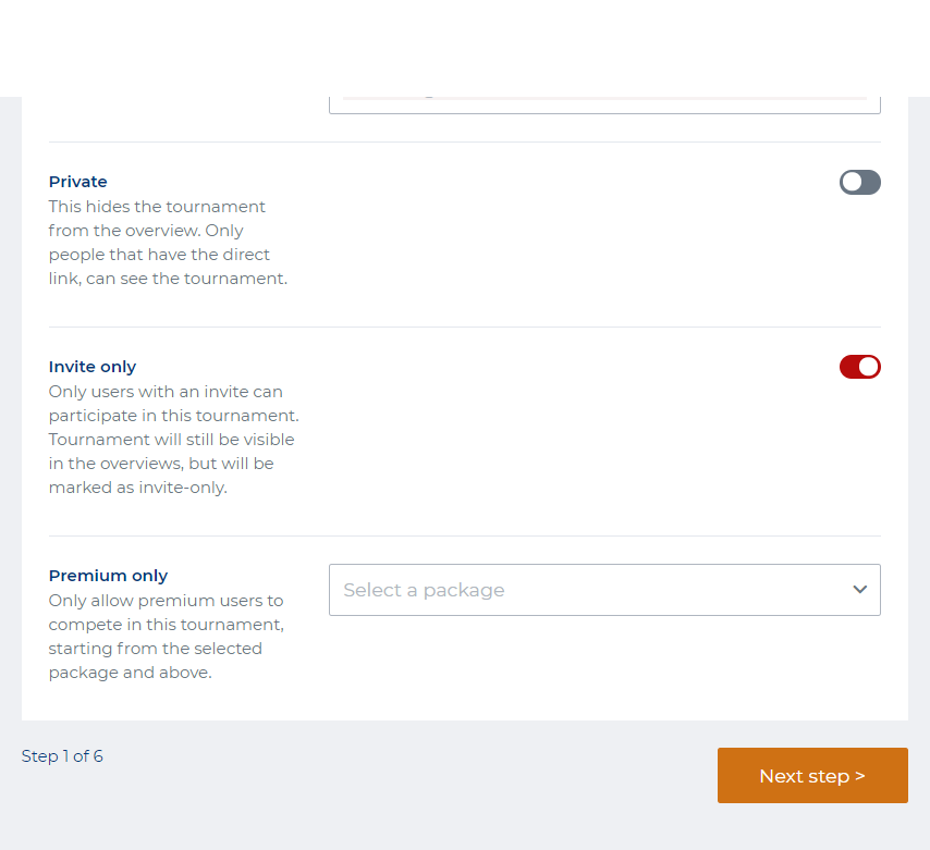 Note: invite-only tournaments will not be displayed in the tournament overview.
