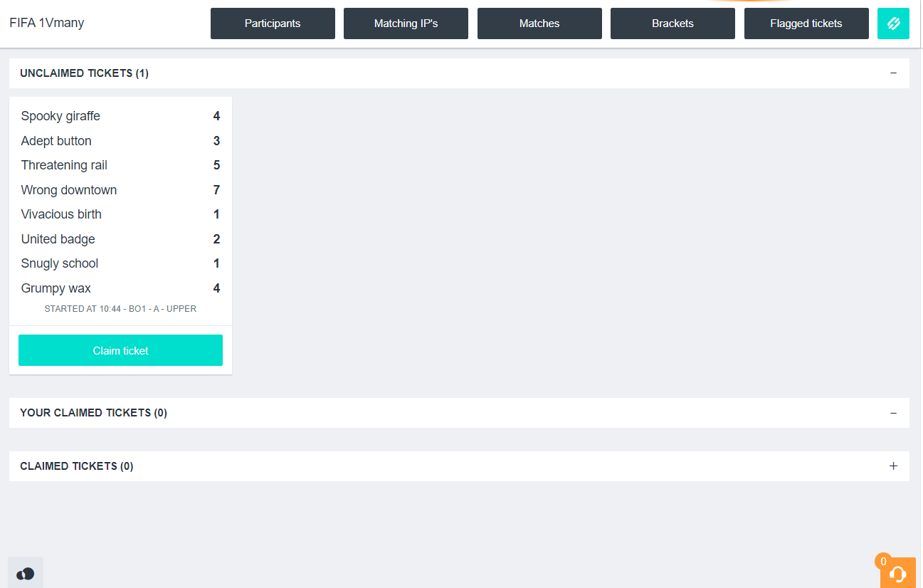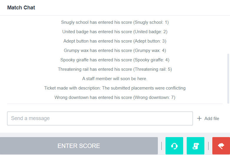 When all participants submitted their score and at least two players submitted the same score, the final result will be faulty. In this case a ticket will be automatically made:
