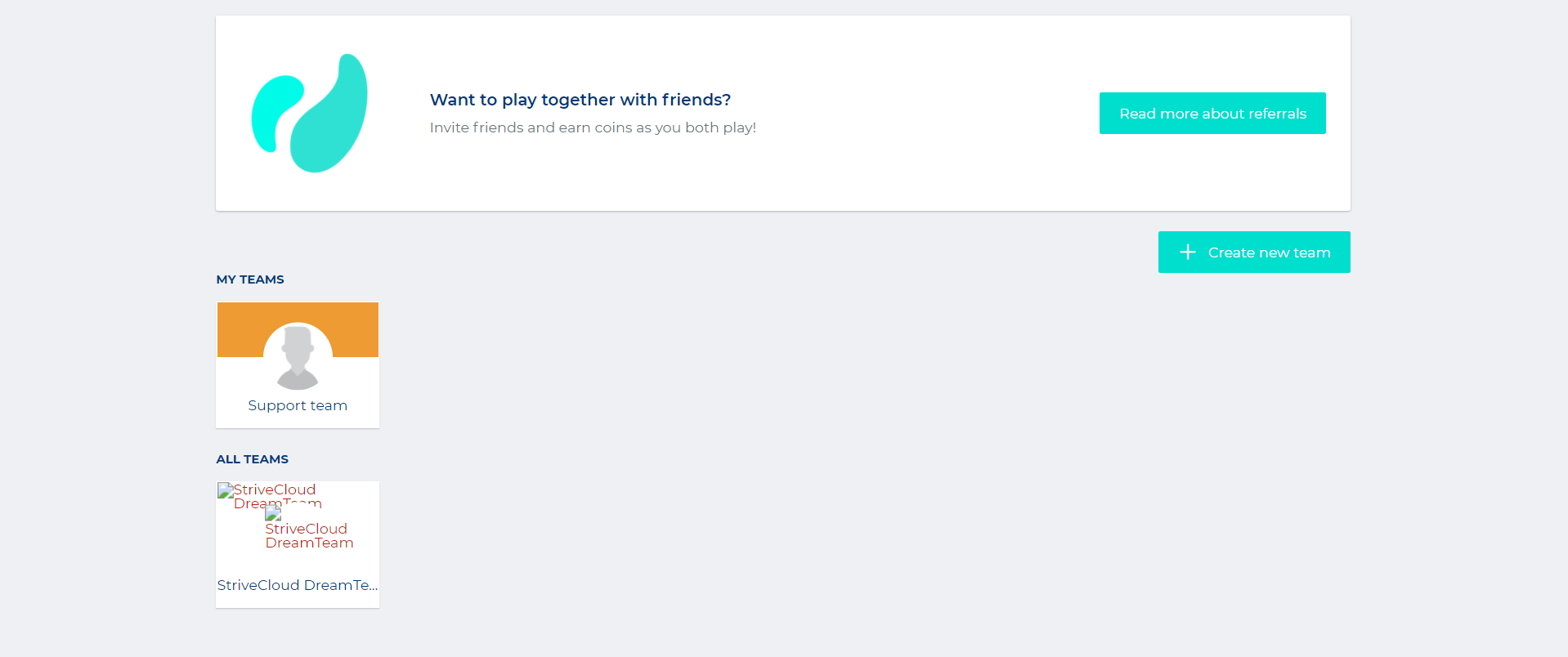 Here you will see an overview of the teams you belong to; these can be your own, or others that you’ve joined.