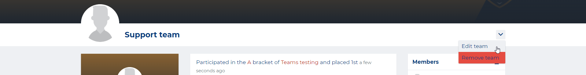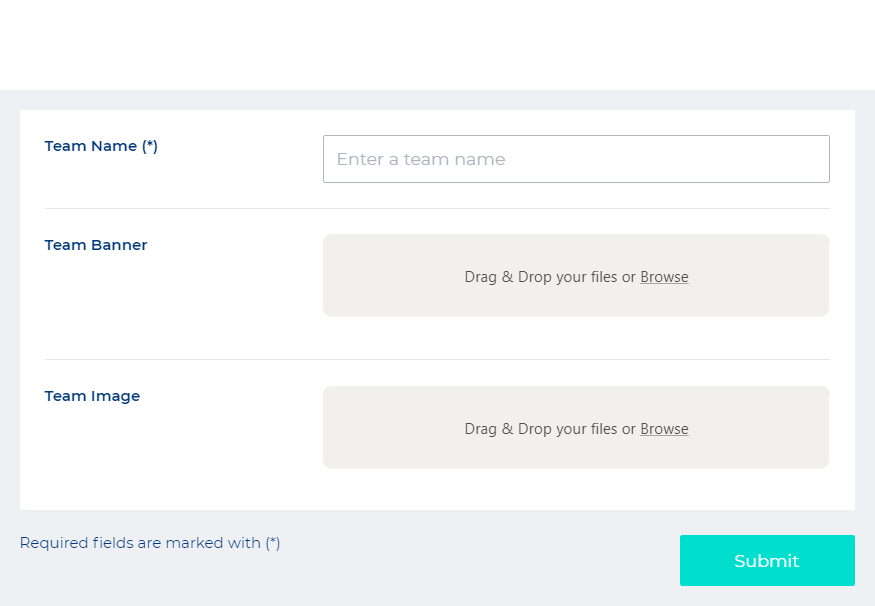 Team name: Submit a unique name for your new team. Team banner: Upload a banner to display in your team’s space. Team image: Upload a team avatar to display. | ![]() |
